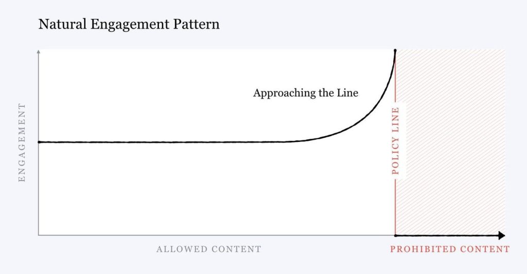 צוקרברג מראה באמצעות הגרף, שלא משנה איפה יעבור הגבול של מה מותר לפרסם בפייסבוק – ככל שתוכן מתקרב לגבול (והוא יותר חריף ואלים) – כך הוא יקבל יותר חשיפה (במאמר הוא טוען שצריך לשנות את זה).