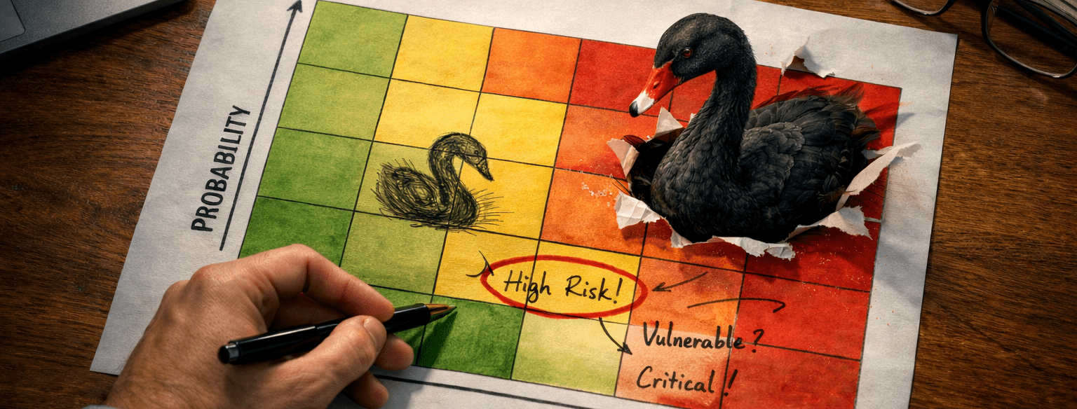 אם הצלחתם לזהות את הסיכון מראש, להגדיר אותו, לדרג אותו ולהכניס אותו לטבלת אקסל – הוא כבר לא ברבור שחור. הוא פשוט סיכון נדיר.
