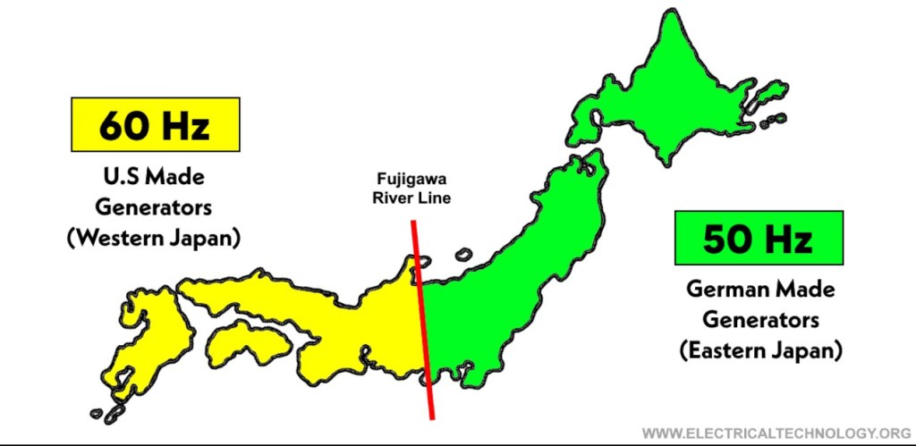 ברשת החשמל של יפן פועלות שתי רשתות חשמל נפרדות עם תדירויות חשמל שונות. במזרח המדינה רשת החשמל פועלת על 50 הרץ, ובמערב המדינה – על 60 הרץ. קו דמיוני, שעובר פחות או יותר בין טוקיו לנגויה, מפריד בין שתי מערכות חשמל שלא מדברות זו עם זו. זו לא אנקדוטה טכנית שולית, אלא מציאות תשתיתית שמלווה את יפן כבר יותר ממאה שנה.