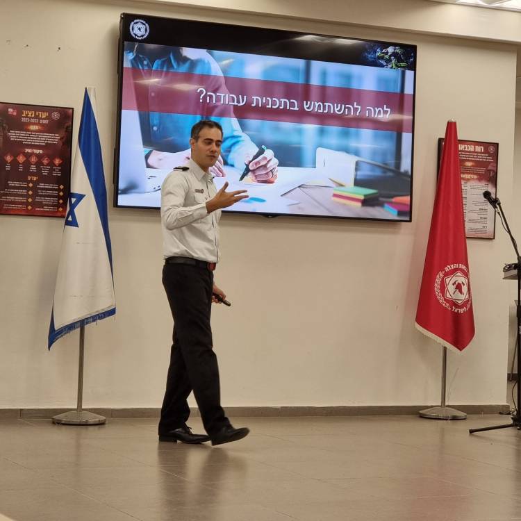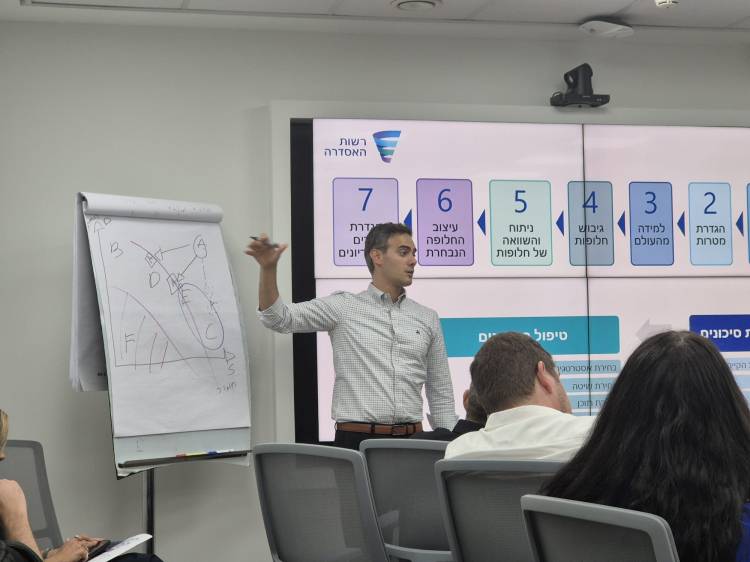 Guy Mor at OECD panel – regulation, public policy, risk management Guy Mor, a senior fire and rescue officer, delivering a lecture on staff work during an officers training courseGuy Mor delivering a lecture on regulatory risk management using a whiteboard, explaining risk matrix and strategic prioritization for regulators